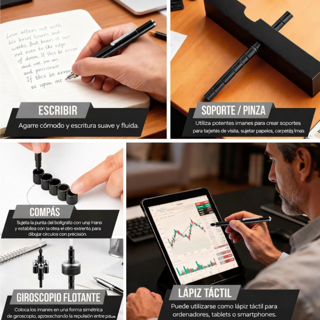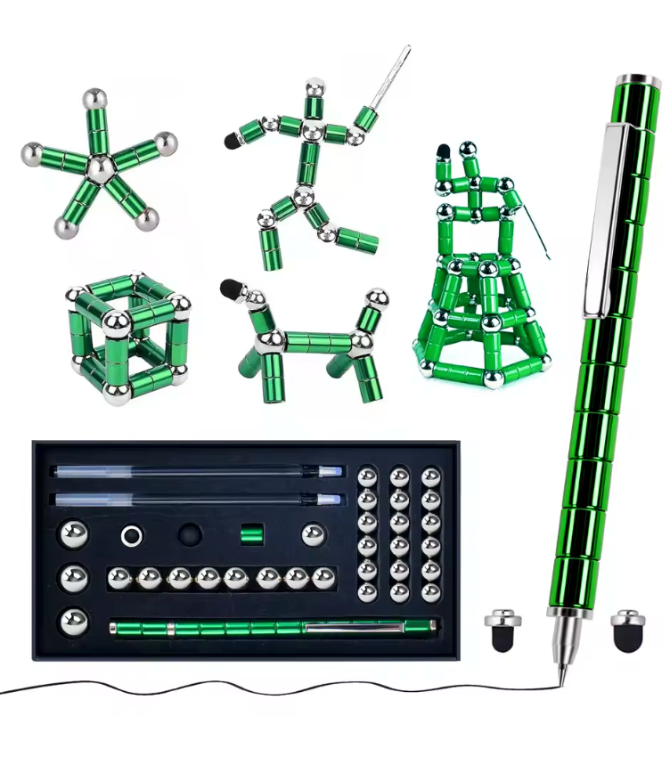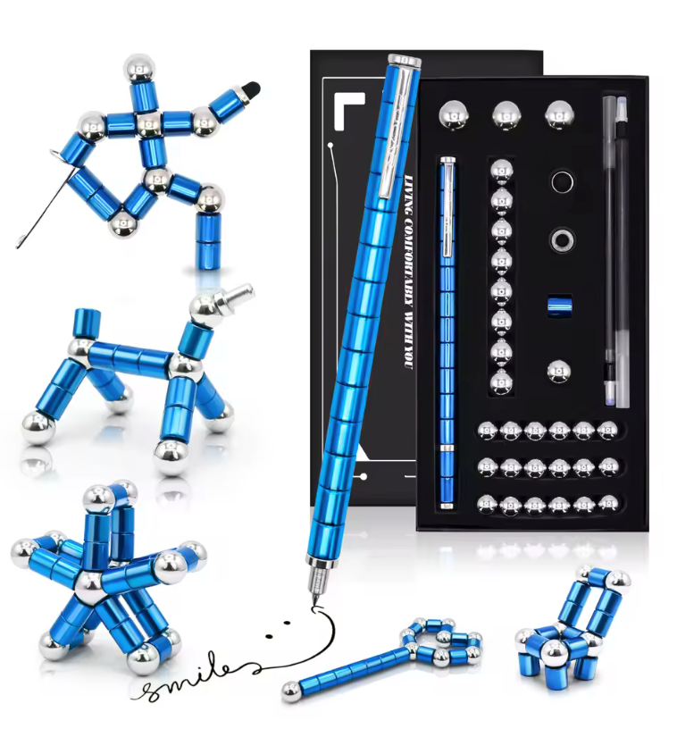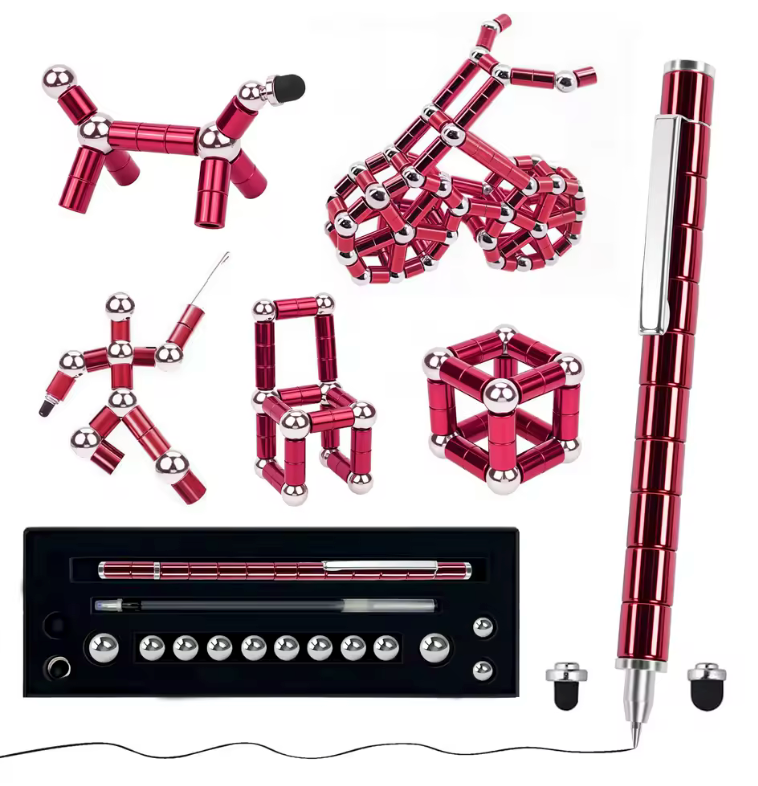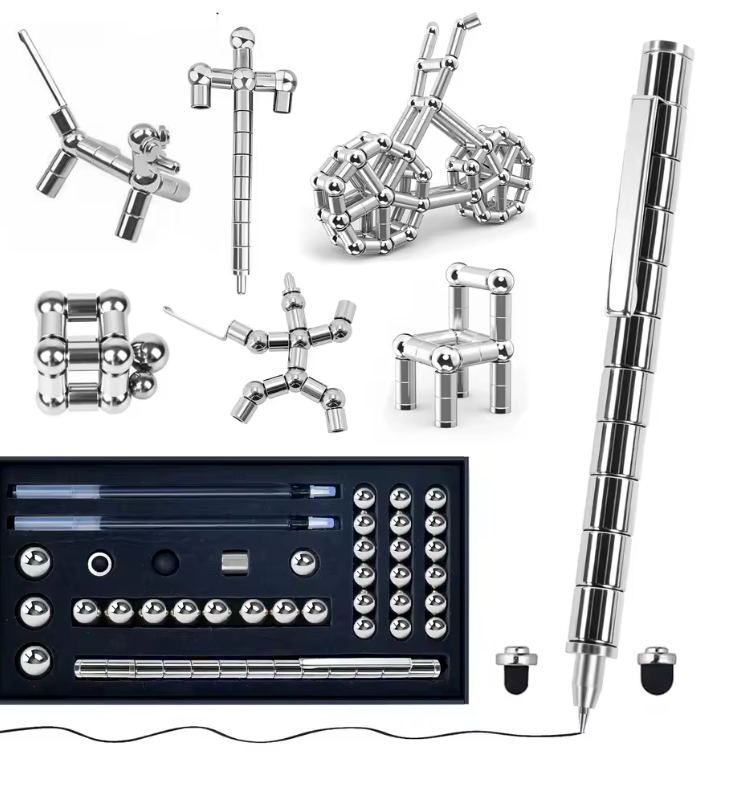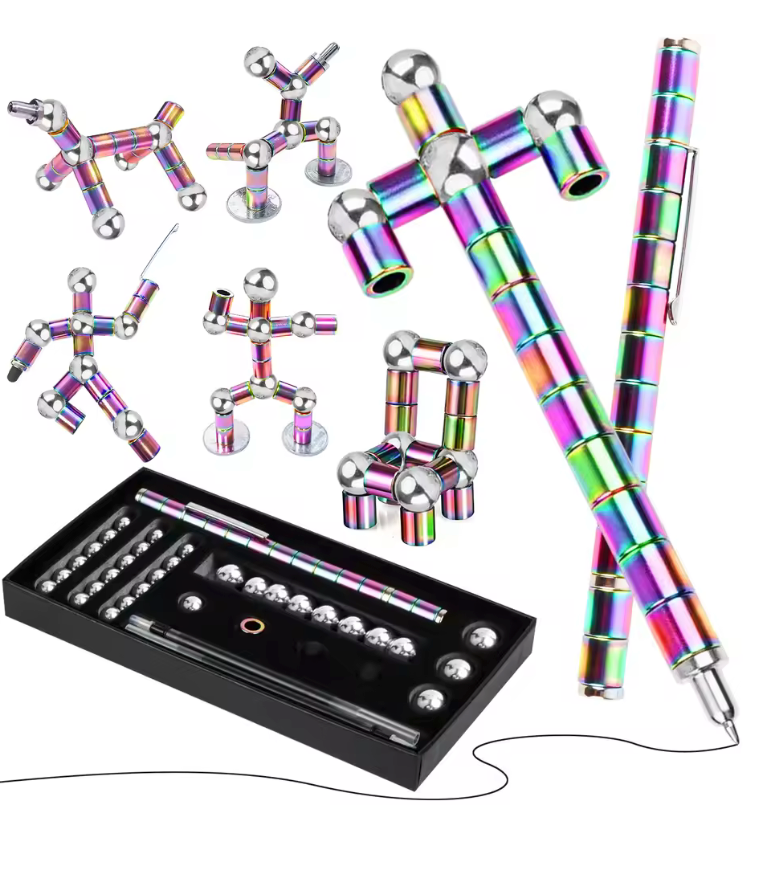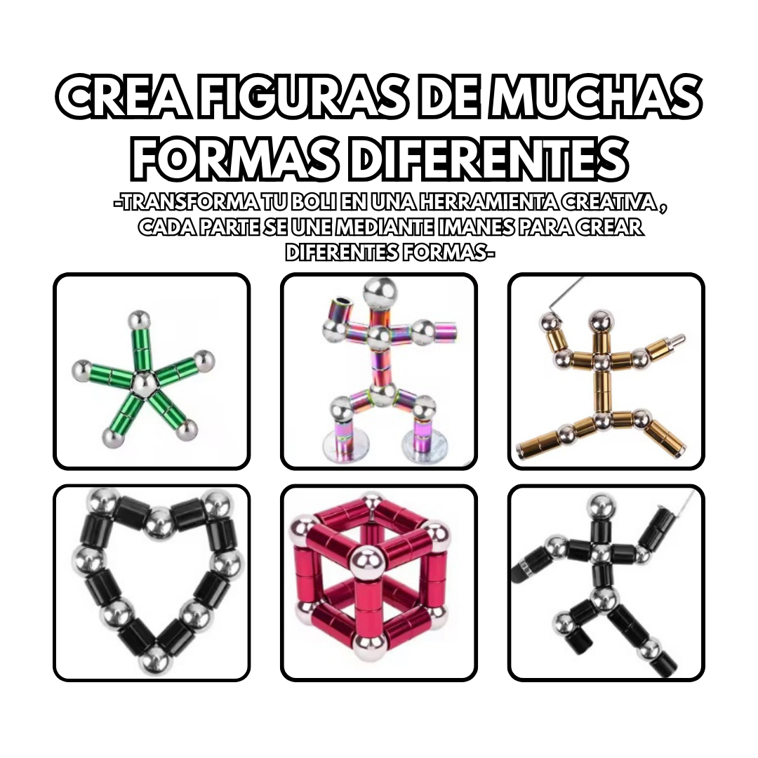 Combina aritos magnéticos para crear figuras y transformar tu bolígrafo en un accesorio creativo y antiestrés.